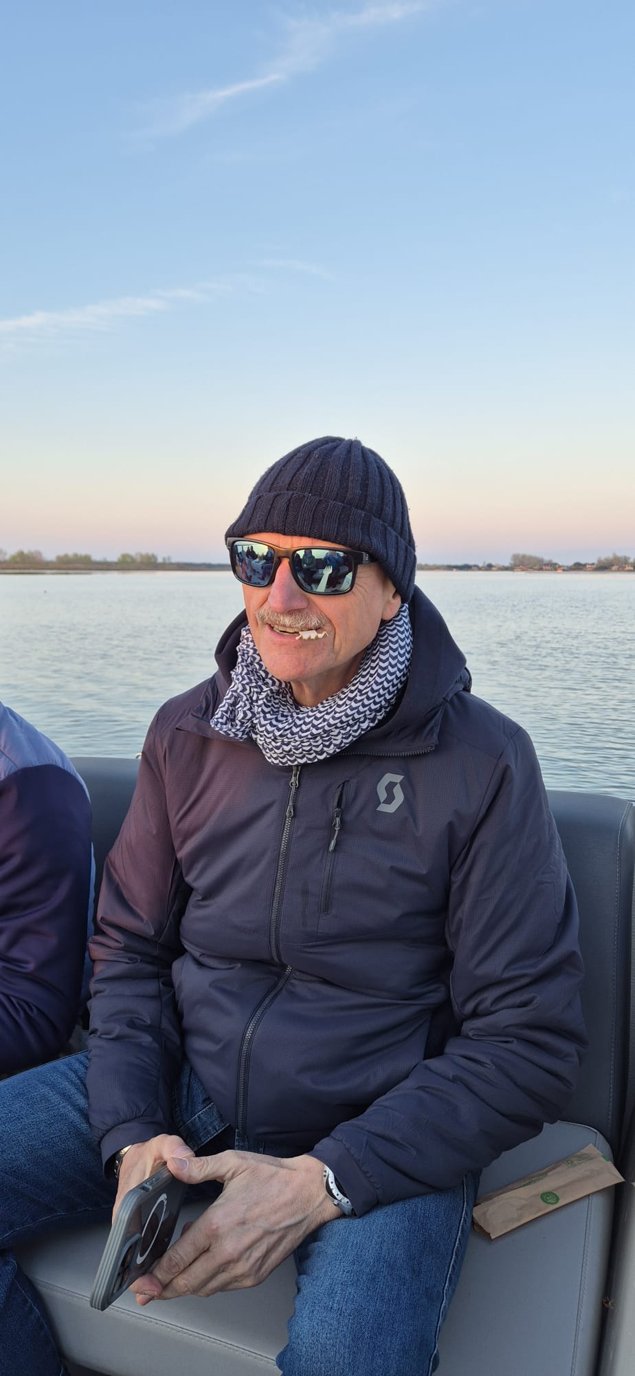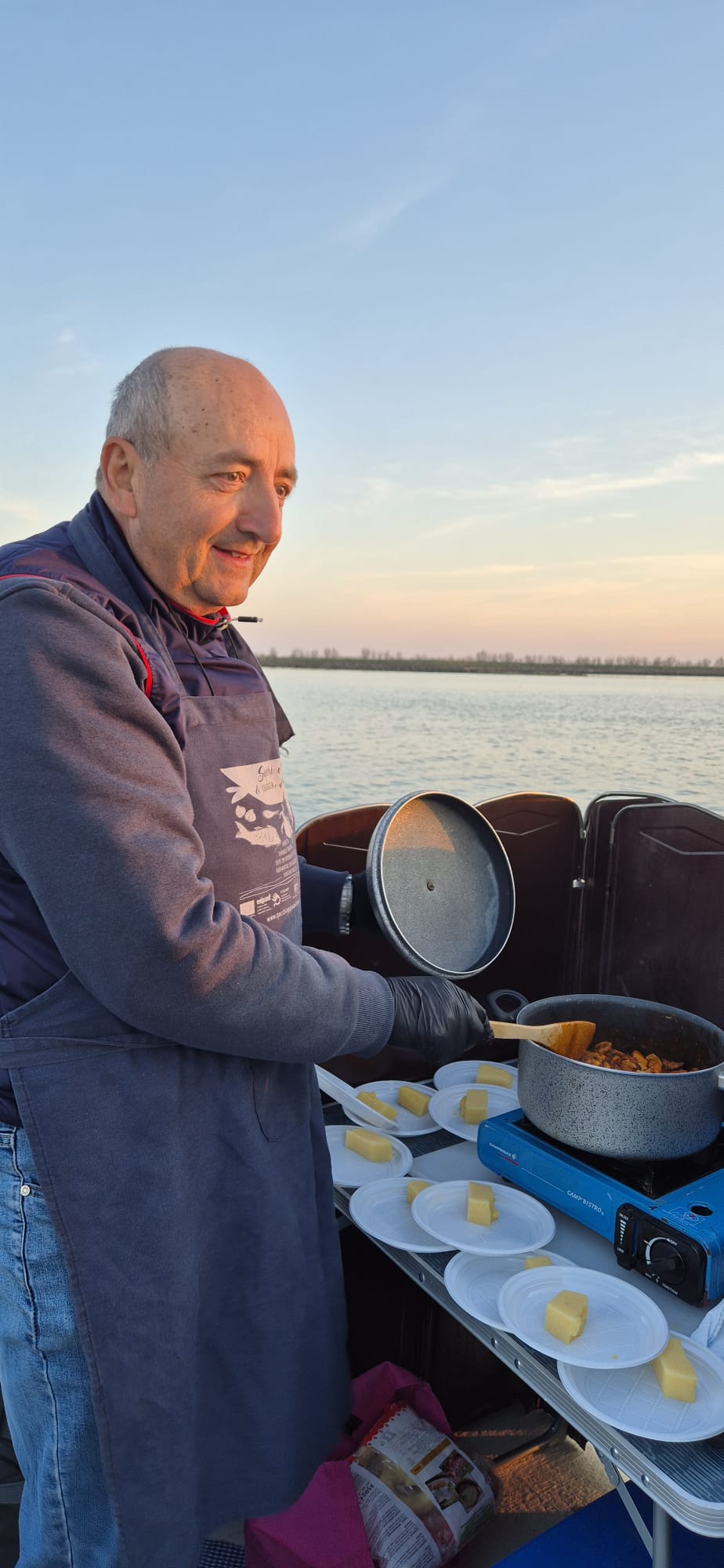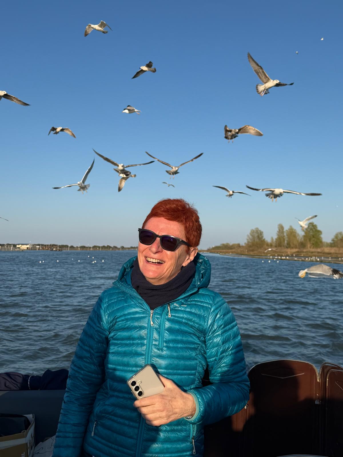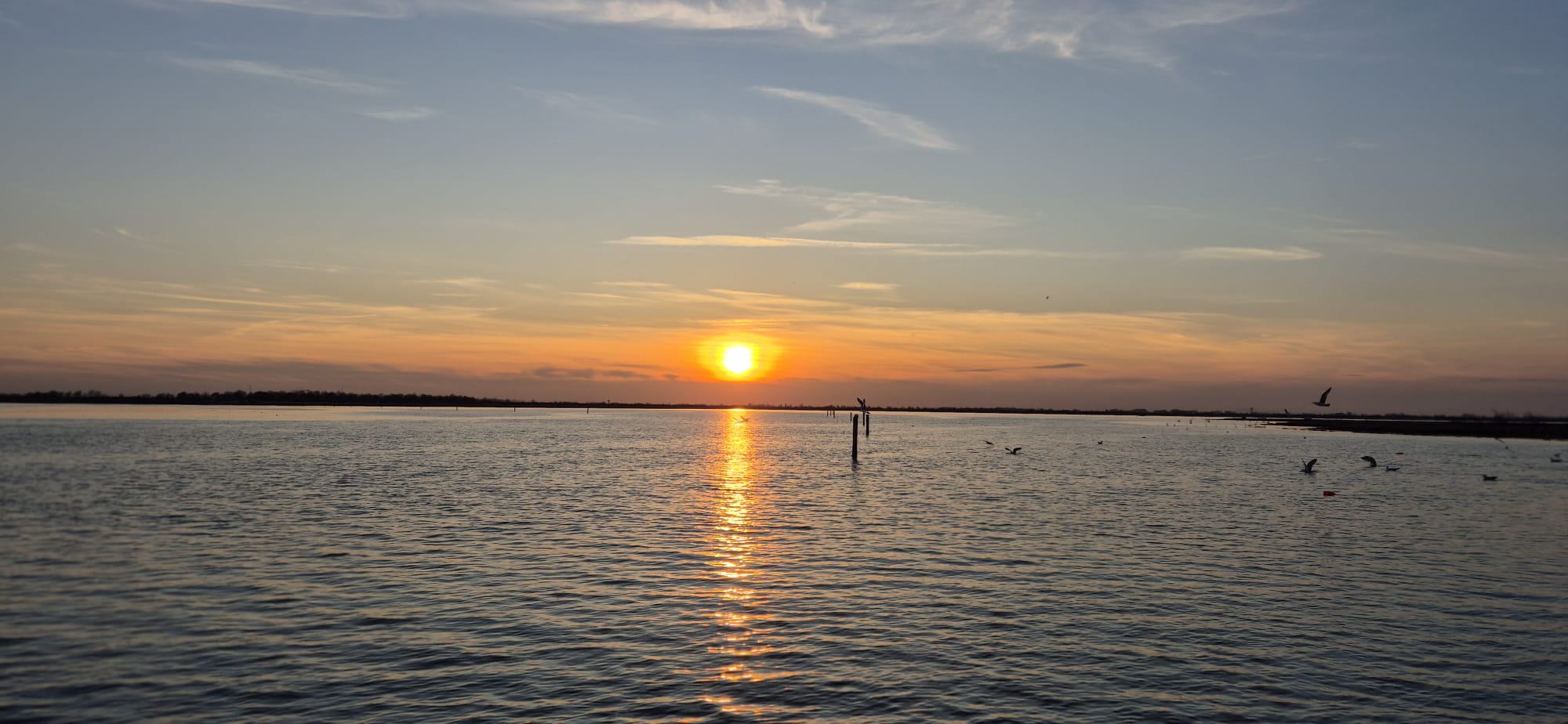 Alle cinque di sabato il gruppo si è recato al Sunset Point n° 13 per un’escursione nella laguna di Caleri, tra orti d’acqua e fenicotteri, aspettando il tramonto con un buon bicchiere di vino e cicchetti. Il Capitano/Cuoco Sig. Daniele Grossato, ci ha deliziato con ottimi cicchetti: gamberetti con polentina, cozze, formaggio e miele del territorio, il tutto accompagnato da prosecco e spritz e, per finire, i biscotti “S” rigorosamente intinti nel prosecco, mentre la Guida Naturalistica Sig. Nicola Donà, molto preparato, ha spiegato tutti i segreti della laguna, dalle maree, al fondale, alle coltivazioni di vongole negli orti, il lavoro dei pescatori, gli uccelli migratori e quelli stanziali. Un’esperienza davvero entusiasmante ed istruttiva.