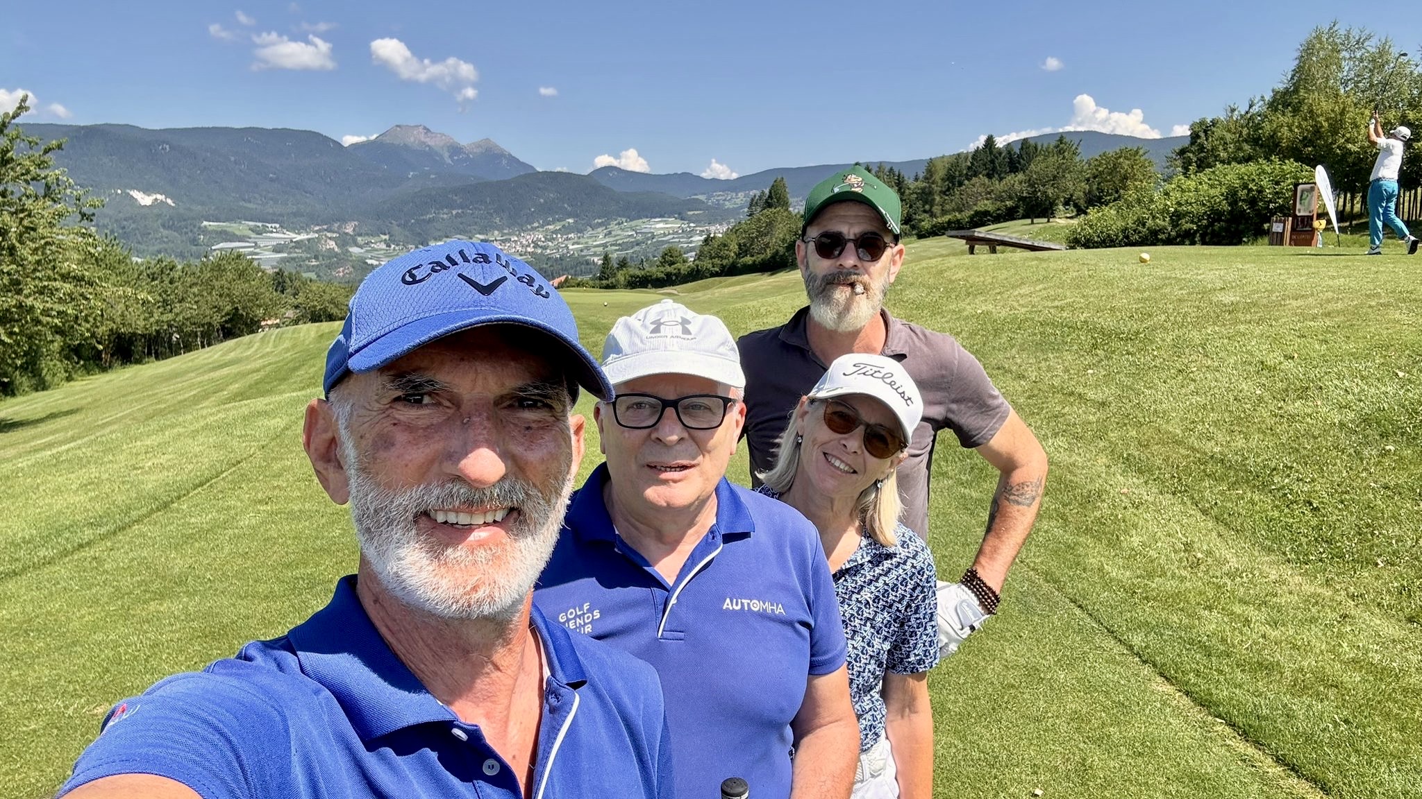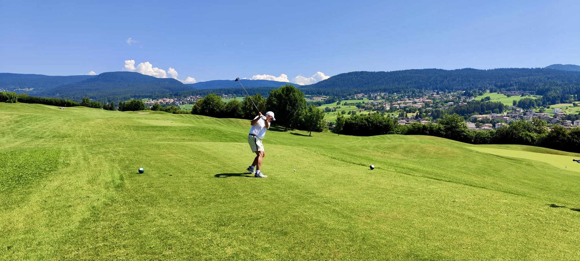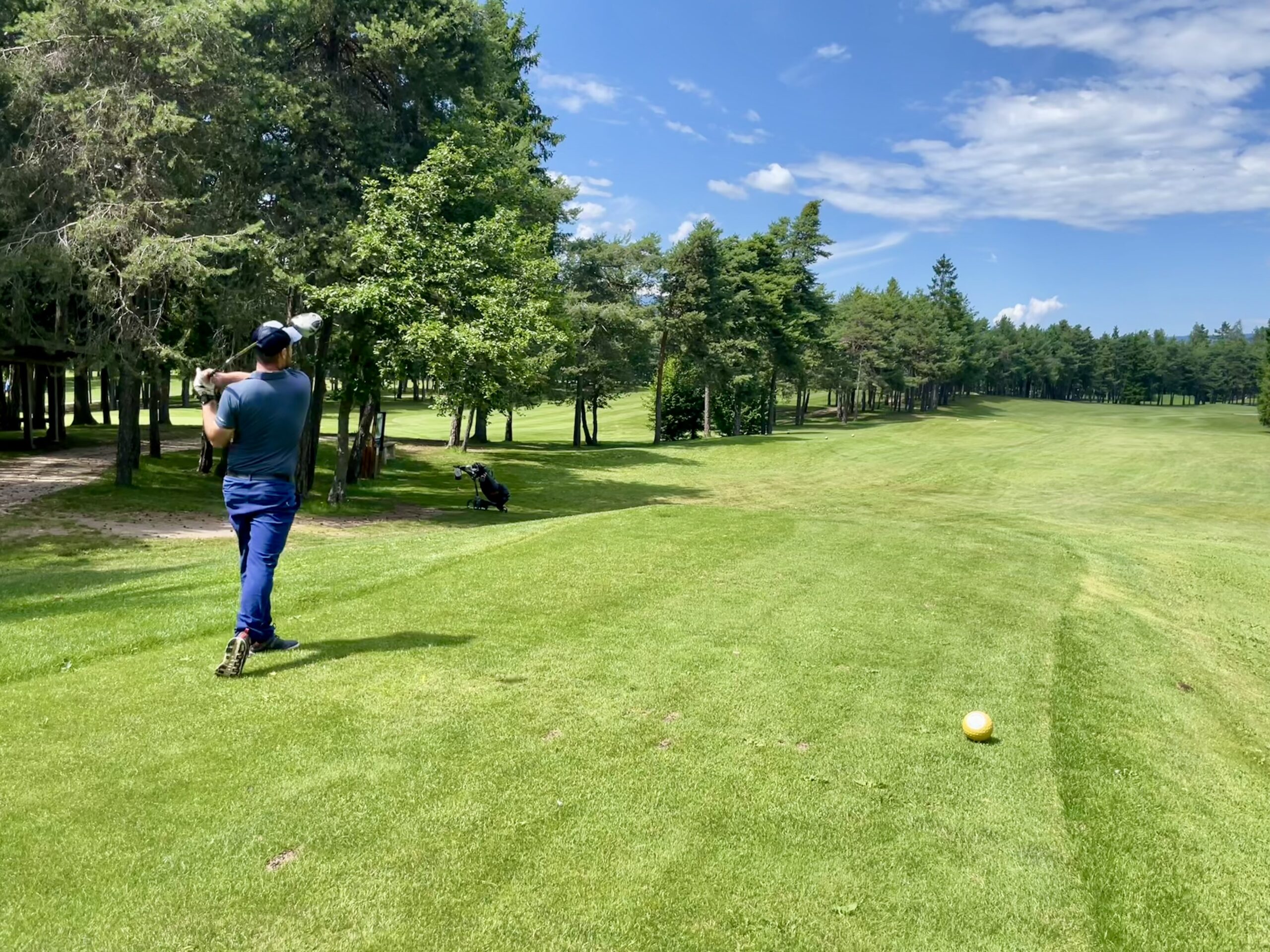 Mercoledì mattina tutti pronti alla sfida sul meraviglioso percorso del Dolomiti Golf Grazie a Nicola Dalpiaz, Direttore del Circolo, per l’ospitalità e la lungimiranza. Ha deciso di farci partire dalla buca 10, percorso sull’altopiano e poi dalla buca 1, percorso nel bosco più in ombra.