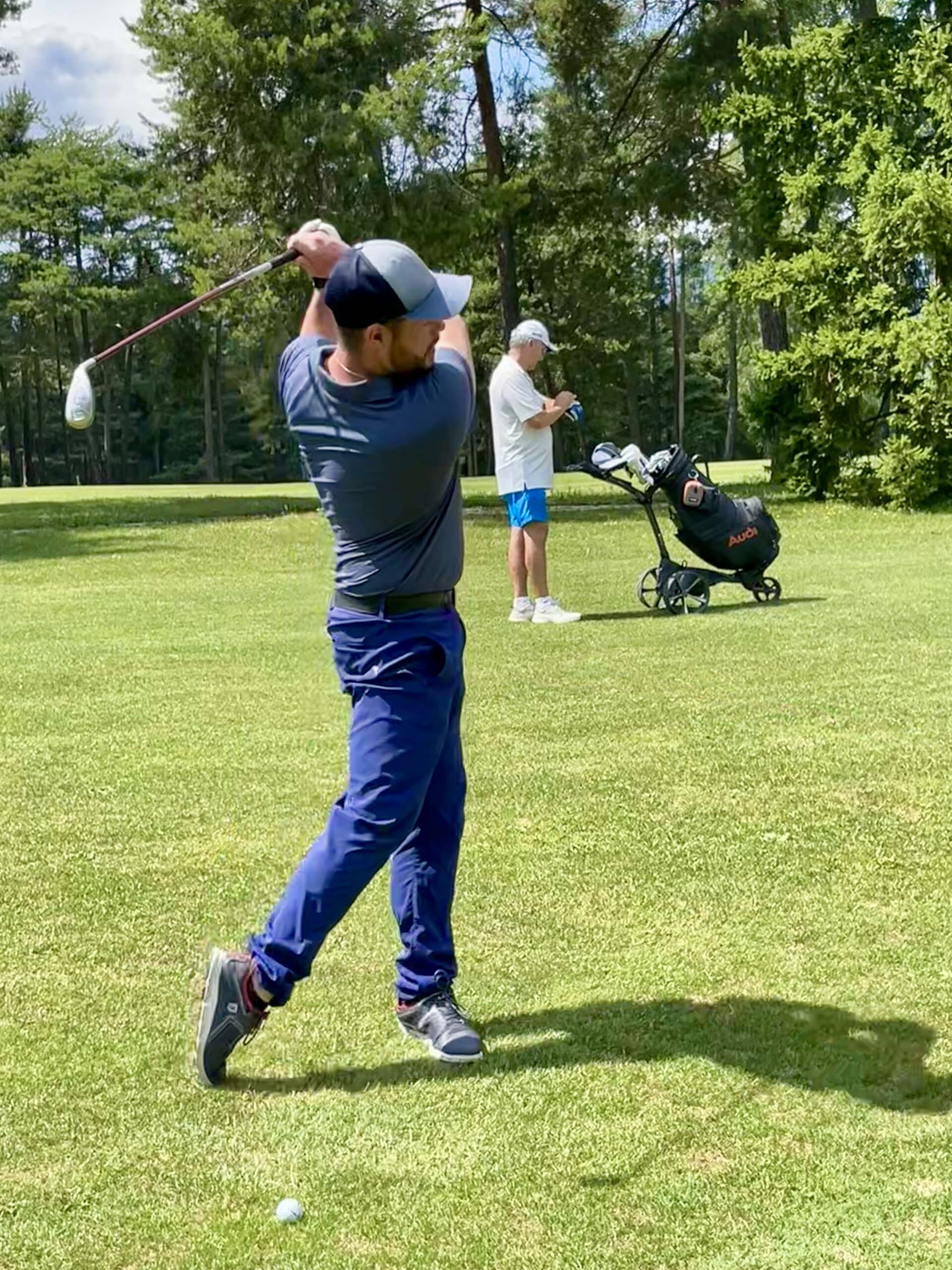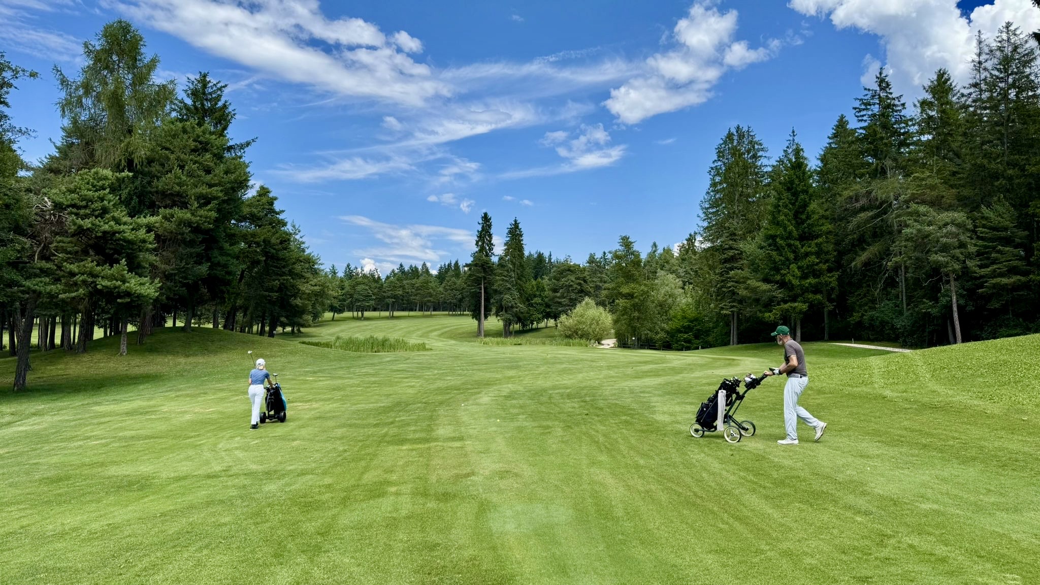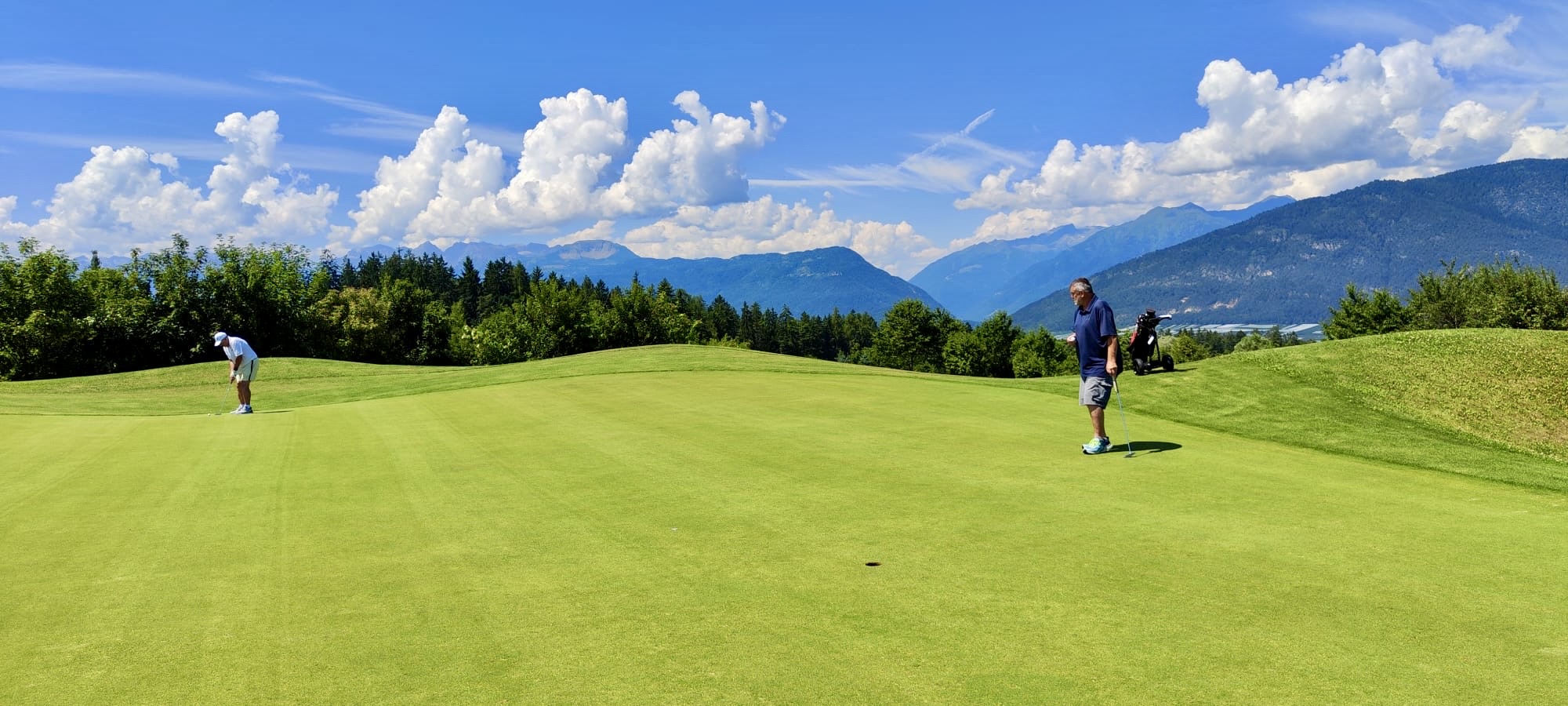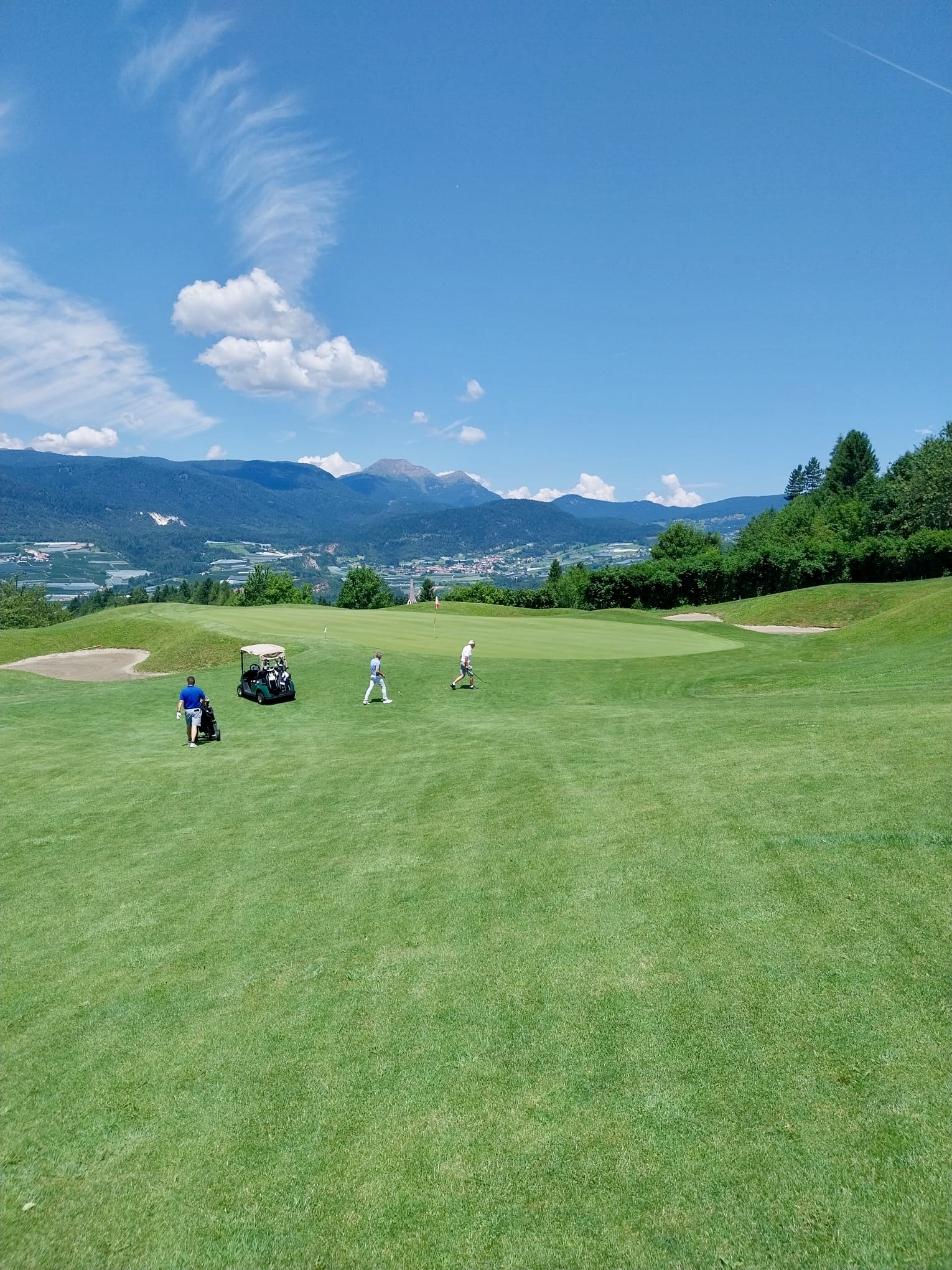 Mercoledì mattina tutti pronti alla sfida sul meraviglioso percorso del Dolomiti Golf Grazie a Nicola Dalpiaz, Direttore del Circolo, per l’ospitalità e la lungimiranza. Ha deciso di farci partire dalla buca 10, percorso sull’altopiano e poi dalla buca 1, percorso nel bosco più in ombra.